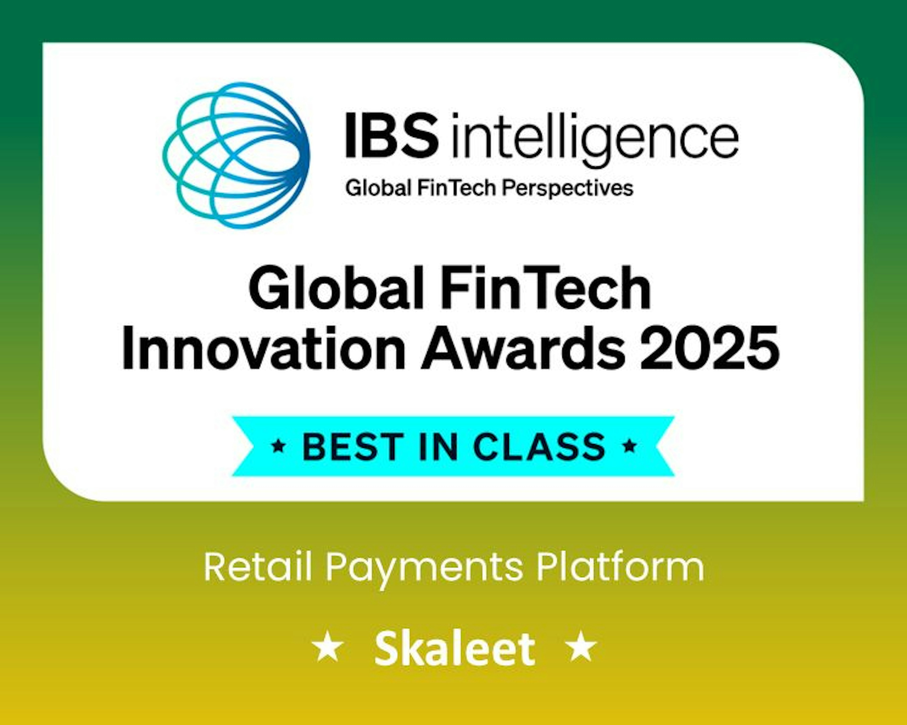 Paris, France - November 21, 2025 - Today, Skaleet is proud to announce that it has taken home the IBS Intelligence (IBSi) award for Best-in-Class Retail Payments Platform for its collaboration with FDJ Services in launching a bill-payment solution and account/card offer at the Global FinTech Innovation Awards (GFIA).
